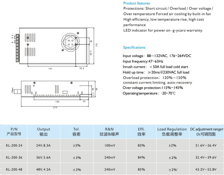 高效率、低溫升、高性價(jià)比 適用于LED顯示、工業(yè)控制 輸入電壓:88-132VAC,176-264VAC 輸入頻率:47~63Hz 沖擊電流:<50A滿載冷態(tài) 保持時(shí)間:≥20ms@230VAC滿載 過(guò)載保護(hù):120%-150%自動(dòng)恢復(fù)限;限流保護(hù),自動(dòng)恢復(fù) 過(guò)壓保護(hù):115%~145% 運(yùn)行溫度:-20-70℃" />