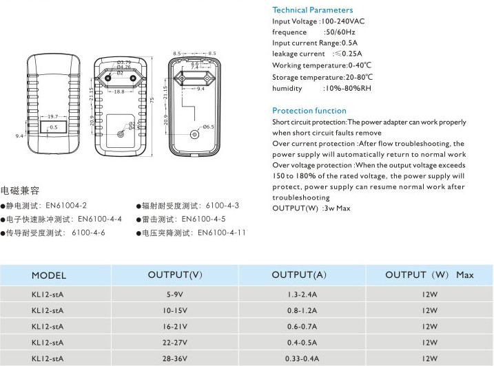 短路保護: 電源適配器在短路解除時能正常工作恢復