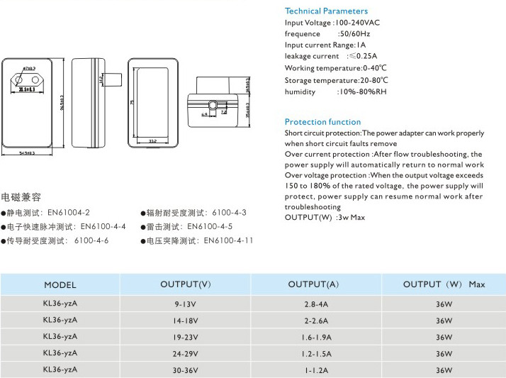 短路保護: 電源適配器在短路解除時能正常工作恢復(fù)